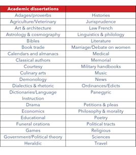 Asimismo, deben tenerse en cuenta otros criterios de búsqueda que hemos incorporado y que, hasta el momento, no habían sido empleados en otros proyectos de catálogos de títulos abreviados. Así pues, para 80% de las entradas actuales de Iberian Books se ha calculado el número de pliegos usado por los impresores. Los números resultantes derivan de dividir el número total de folios de una edición por el formato. Esto permite la posibilidad de filtrar una búsqueda por el tamaño físico de las ediciones y, por tanto, de acotar los resultados a impresos breves, libros de tamaño medio o volúmenes de gran formato. También podemos realizar búsquedas sobre traducciones, lo que nos permite forjarnos una idea acerca de la migración de los textos.22 Otra función de búsqueda innovadora es la referida al género. Los usuarios pueden ahora buscar, o bien limitar sus búsquedas a, obras escritas o impresas por mujeres. Por último, se ha registrado el extenso corpus de alegaciones en derecho, en las cuales han sido identificadas las mujeres litigantes. Este conjunto de textos legales, probablemente único a esta escala en término europeos, es una gran aunque poco apreciada fuente para el estudio de la historia cultural y social de España.