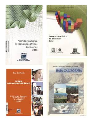 También pertenecen al acervo obras monográficas y seriadas del INEGI que resultan cruciales para entender el territorio mexicano, los recursos naturales, la población, migración, economía y cultura del país. Destaca en este rubro la Síntesis de Información Geográfica por estados, que pretende dar una visión integrada de la geografía física de cada entidad para el aprovechamiento de sus recursos naturales. Son importantes los censos generales de población, empleo y vivienda, porque registran aspectos demográficos, económicos y sociales estratégicos para la planeación gubernamental. Incluye asimismo los anuarios estadísticos y geográficos por entidades federativas, con indicadores de empleo, salario, urbanización, vivienda, educación, seguridad pública y asistencia social, entre otros.19 Se complementa con el Anuario estadístico de los Estados Unidos Mexicanos y la Agenda Estadística de los Estados Unidos Mexicanos, útiles para hacer una comparativa de datos dentro del contexto nacional y con el resto del mundo (Imagen 3).