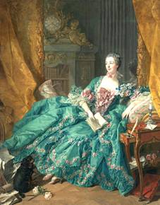 Imagen 3. La moda francesa del siglo XVIII incitaba al pecado, por dejar al descubierto el pecho, los brazos y los pies. François Boucher, La marquise de Pompadour, 1756, óleo, 202 x 157 cm. Colección Alte Pinakothek de Múnich.
