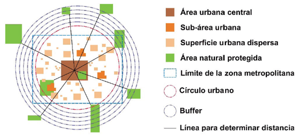 Figura 4 Esquema para recolección de datos: distancia entre superficie urbana y ANP.