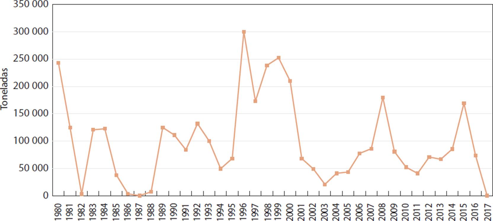 Gráfica 2 Importaciones de cebada de México, 1980-2017